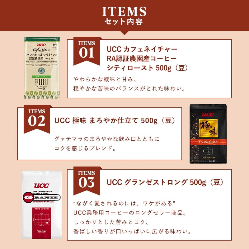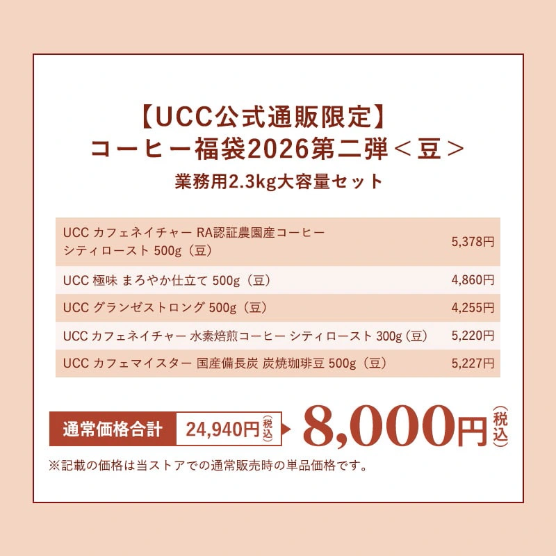 全国のホテルやカフェでも採用されているUCC業務用製品の福袋!5種類2.3㎏の大容量でたっぷりお得に楽しめます♪