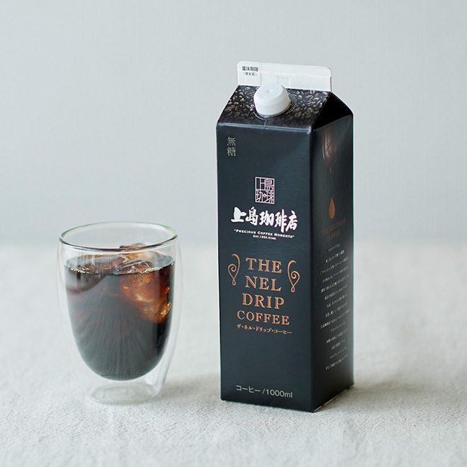 | 上島珈琲店のネルドリップブレンドコーヒー。 コーヒー豆を贅沢に使用し(自社製品比約2倍)、上島珈琲店のお店と同じネルフィルターで抽出をした、まろやかな口当たりのリキッドコーヒーです。そそぐだけで、お店の味をいつでもどこでも気軽に楽しめます。 |